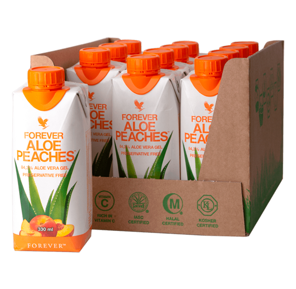 Ο Forever Aloe Peaches™ είναι ο ιδανικός τρόπος για να λαμβάνετε την ημερήσια ποσότητα αλόης. Αυτός ο χυμός περιέχει 84,3% αγνό ζελέ αλόης βέρα που συνδυάζεται με τον φυσικό πολτό ροδάκινων για την στήριξη του ανοσοποιητικού συστήματος, αλλά και την διατήρηση