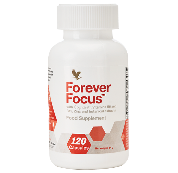Συνδυάζοντας παραδοσιακά βότανα, βιταμίνες και ανόργανα άλατα με το κλινικά μελετημένο Cognizin μπορείτε να αναλάβετε τον έλεγχο της μέρας σας με το Forever Focus. Με εκχυλίσματα rhodiola, bacopa, πράσινο τσάι και γκουαράνα, το Forever Focus συνδυάζει αυτά τα βότανα με τα φυσικά ευεργετικά αποτελέσματα των βιταμινών B6, B12, παντοθενικό οξύ, ψευδάργυρου για να βοηθήσουν στην πνευματική απόδοση.